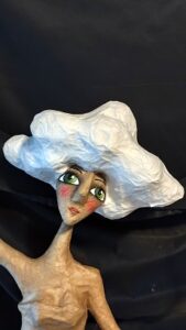 Carta riciclata che profuma ancora dell’inchiostro di quotidiani e volantini. Colla di farina, come vuole la ricetta tramandata di generazione in generazione. Colori ad acqua. Una tecnica umile e antica. Fogli di carta da strappare, stropicciare, incollare, modellare, colorare. Una materia leggera e plasmabile. Una tecnica di modellatura abile e sapiente. Un’arte povera di origine antichissima.